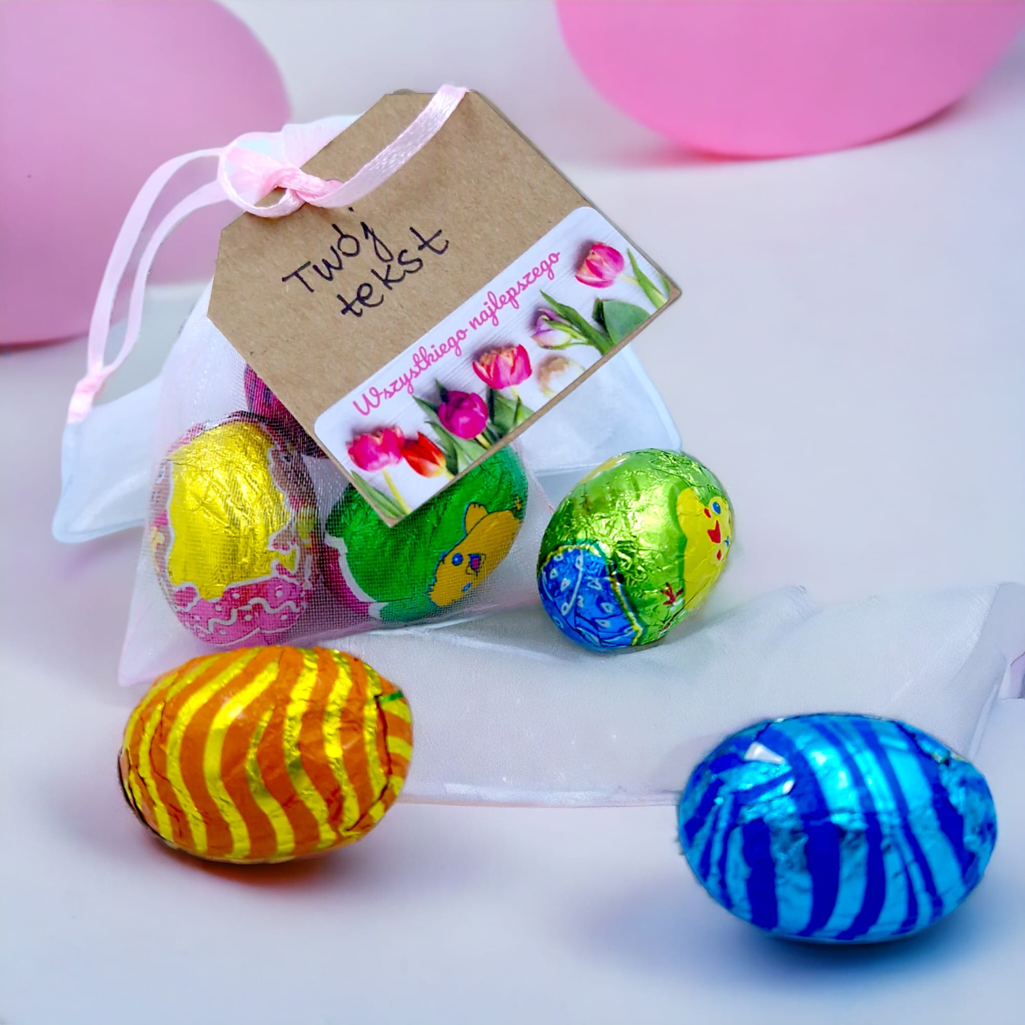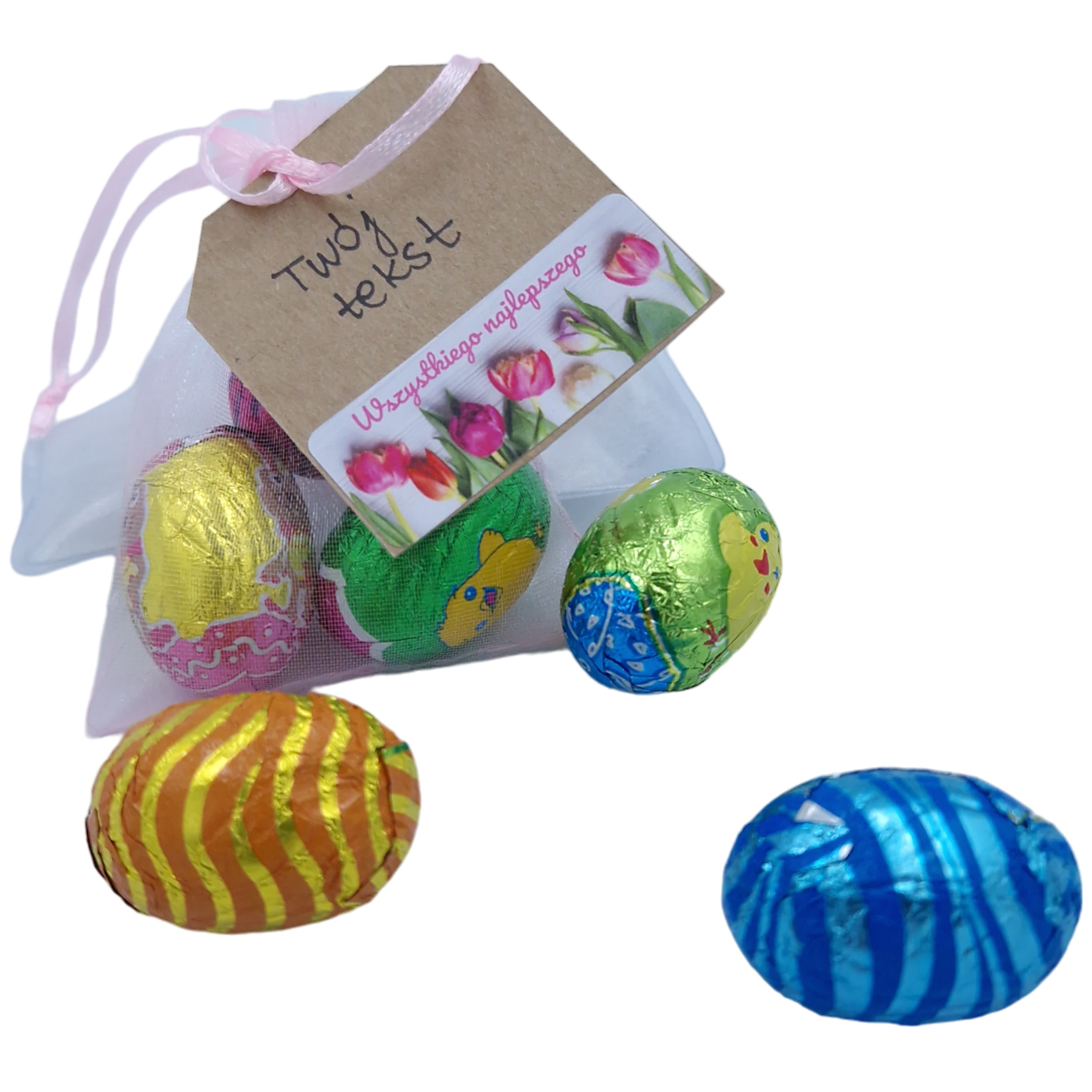 WIELKANOCNE CZEKOLADOWE JAJECZKA W WORECZKU + KARNECIK (40G)