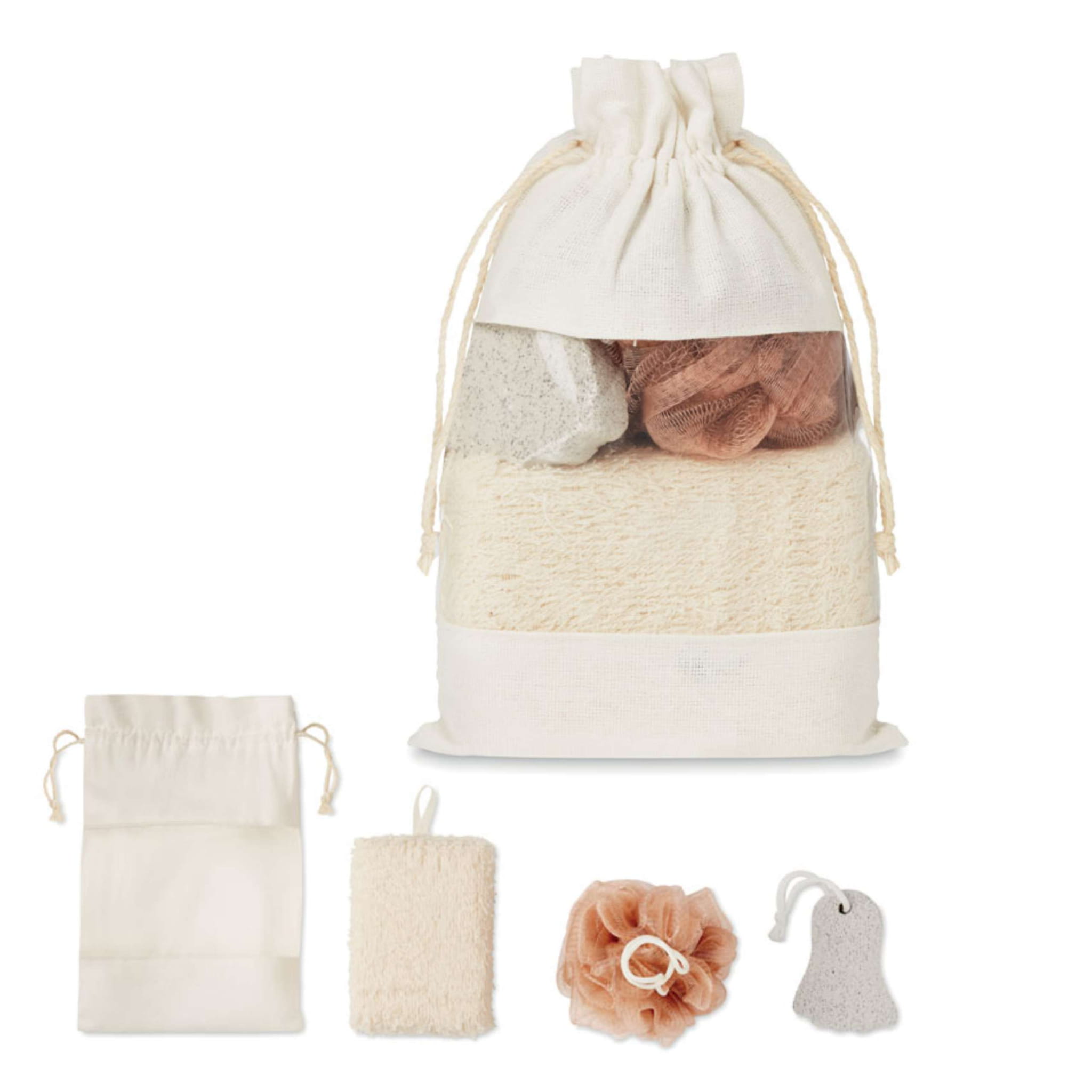 ZESTAW SPA do kąpieli. Gąbka + myjka + pumeks + woreczek. Zestaw prezentowy